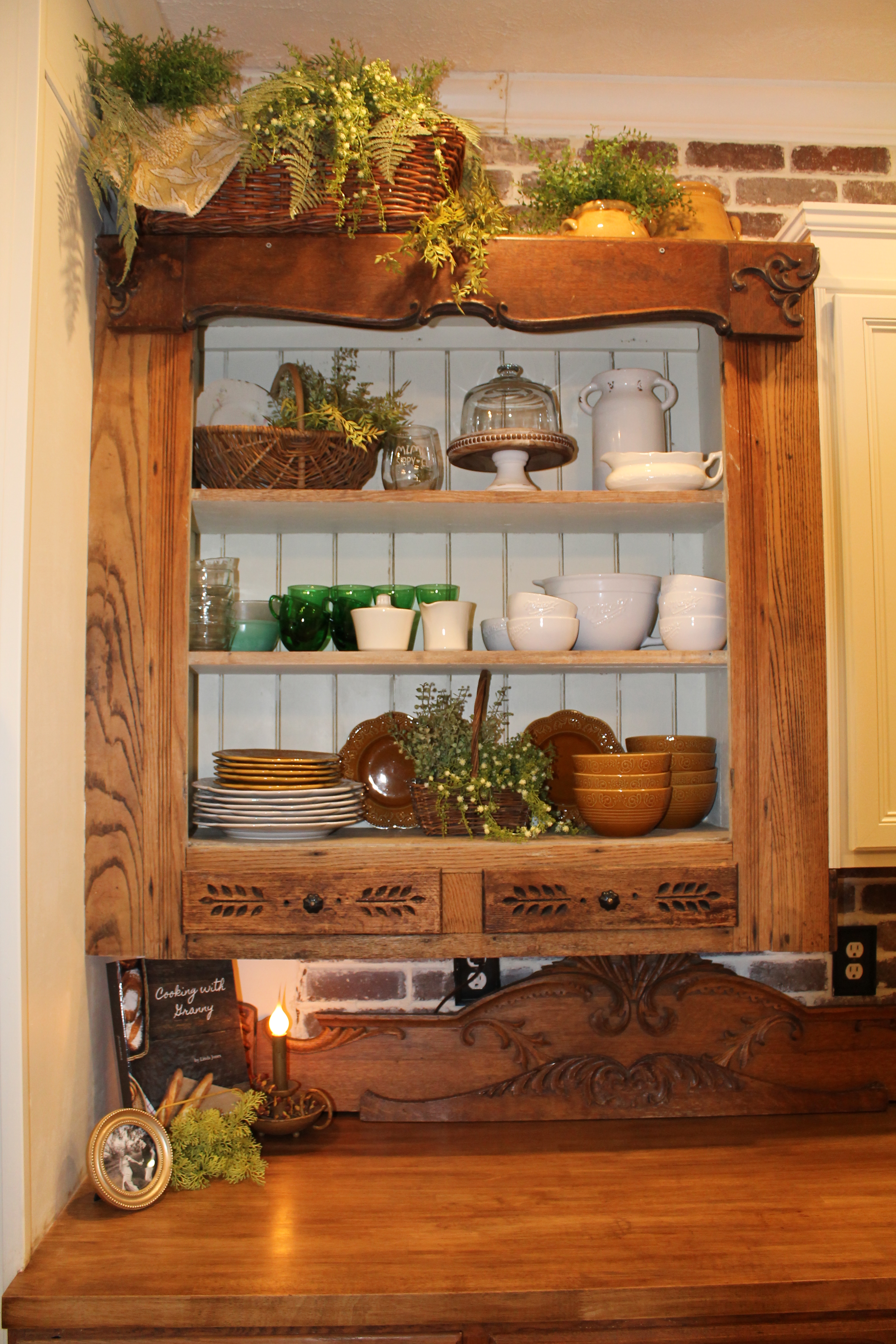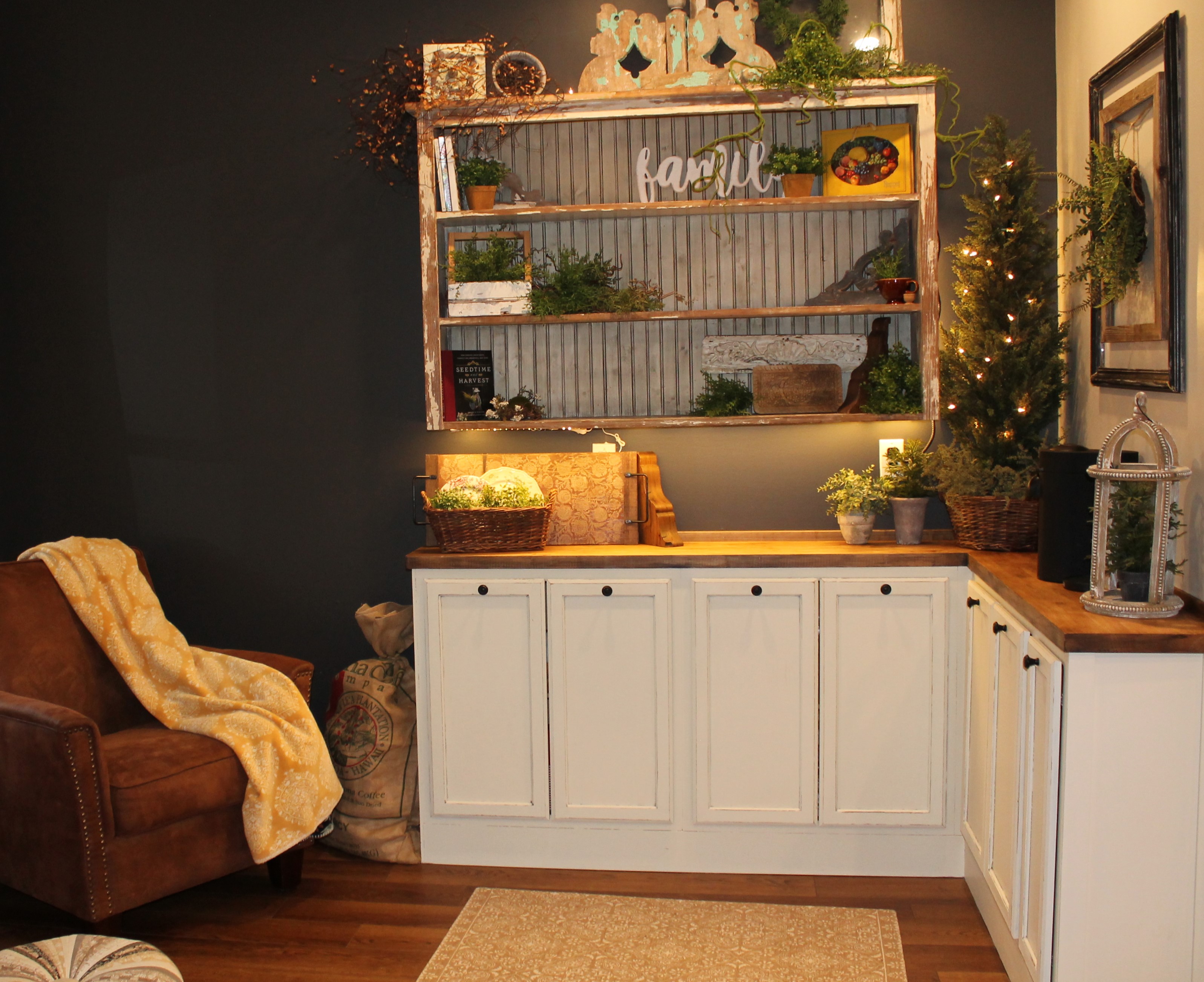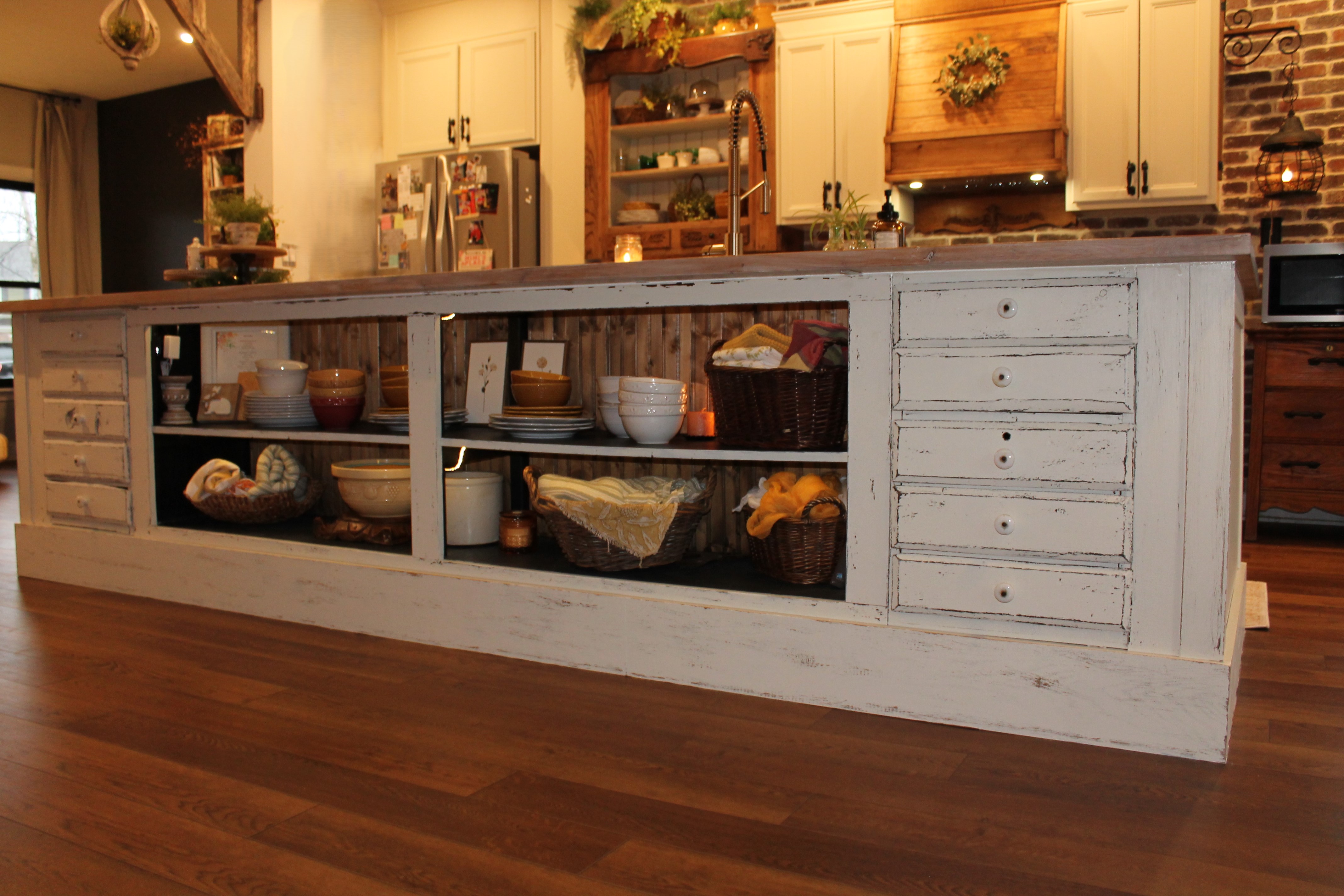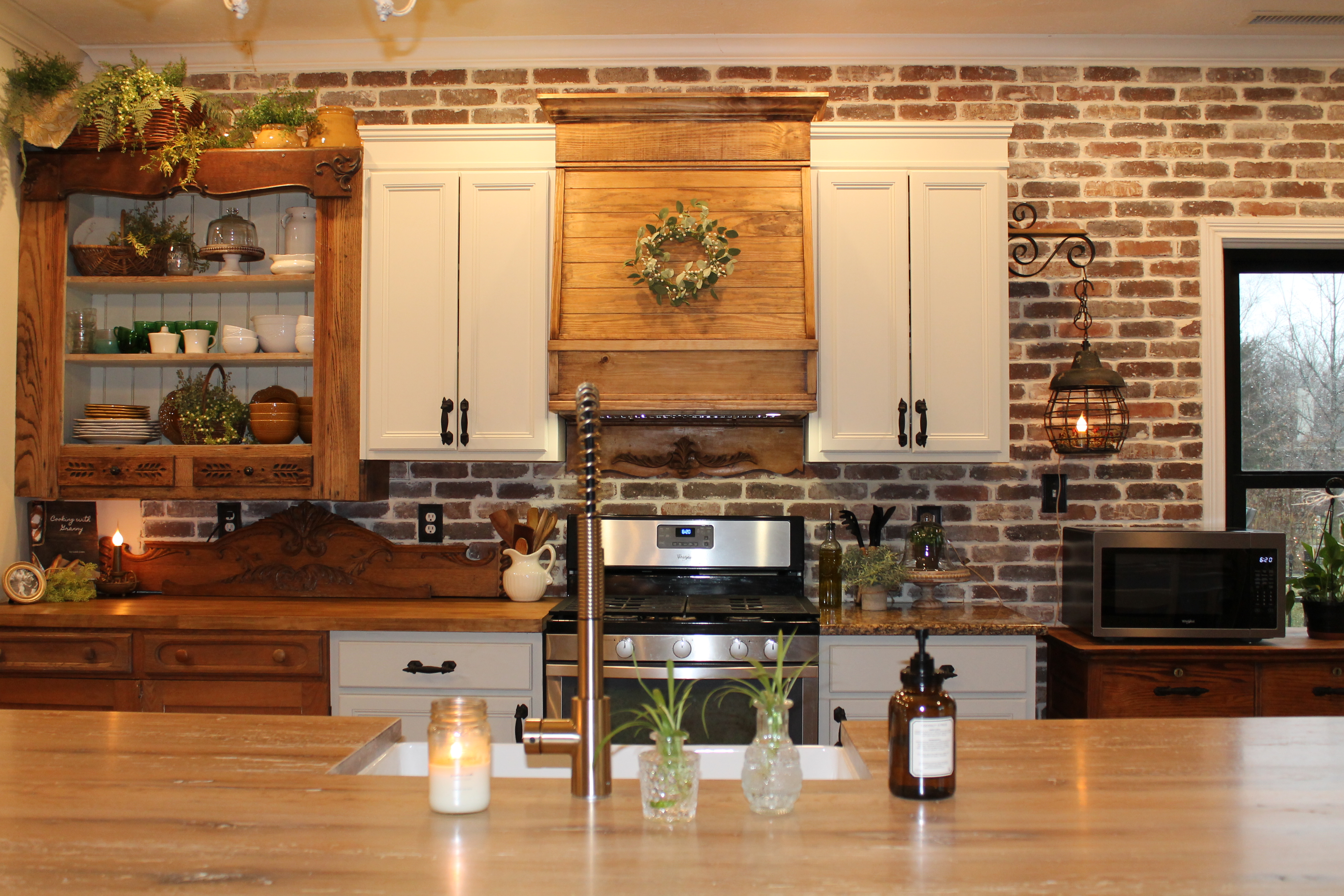This charming suburban kitchen seamlessly blends modern farmhouse and rustic design, featuring traditional lines & beautifully curated antique pieces to add warmth.